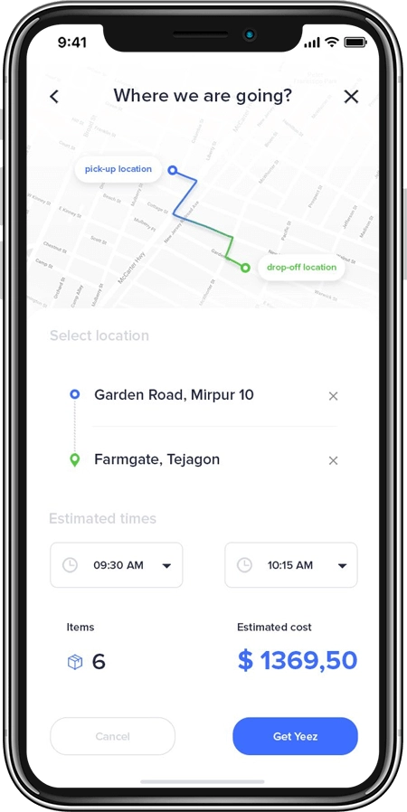 Real-time GPS TrackingNavigating from the pick up to the drop point is facilitated by a real-time GPS interface.